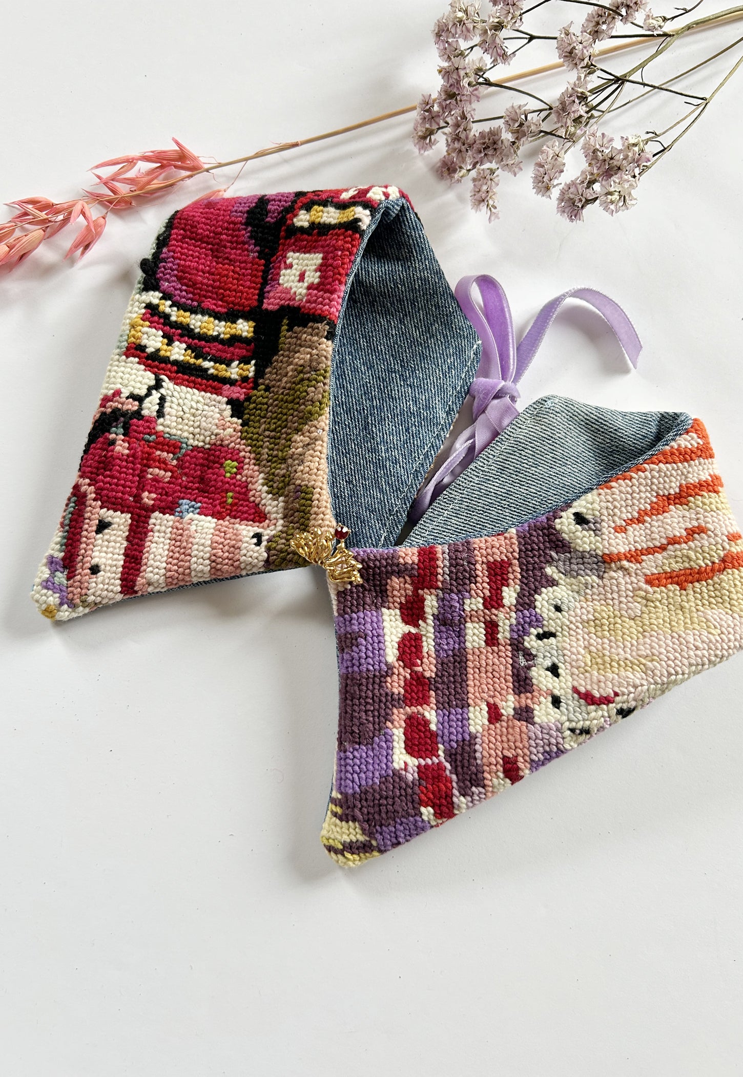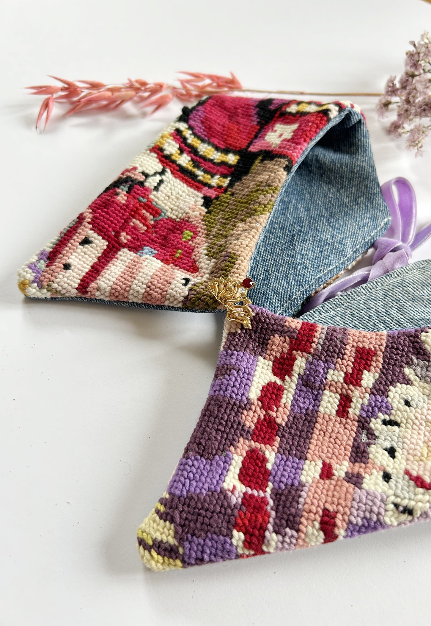 This unique piece is made of a vintage needlepoint  from the 70's.