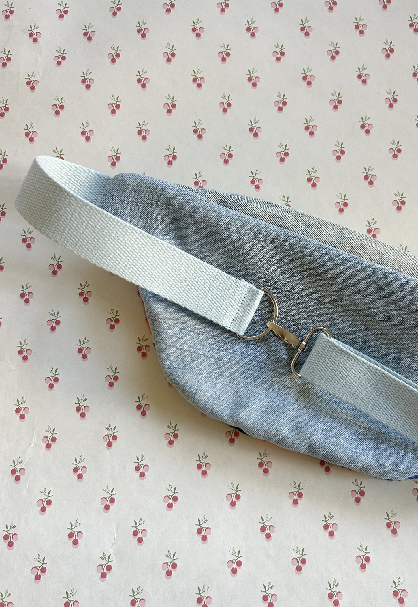 Each bag is a completely unique upcycled creation made from vintage French needlepoint and vintage denim jackets.