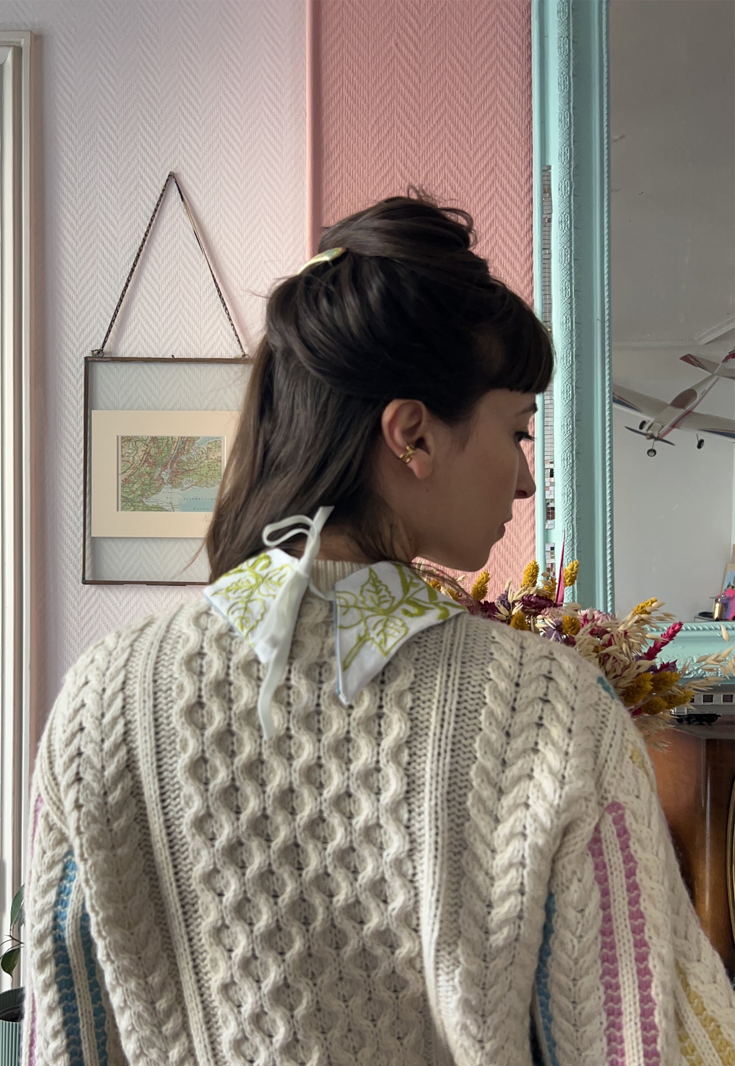 You can adjust it with 2 delicates velvet ribbons at the back and cherry on the top, it comes with a beautiful Vintage brooch to make this piece even more special!