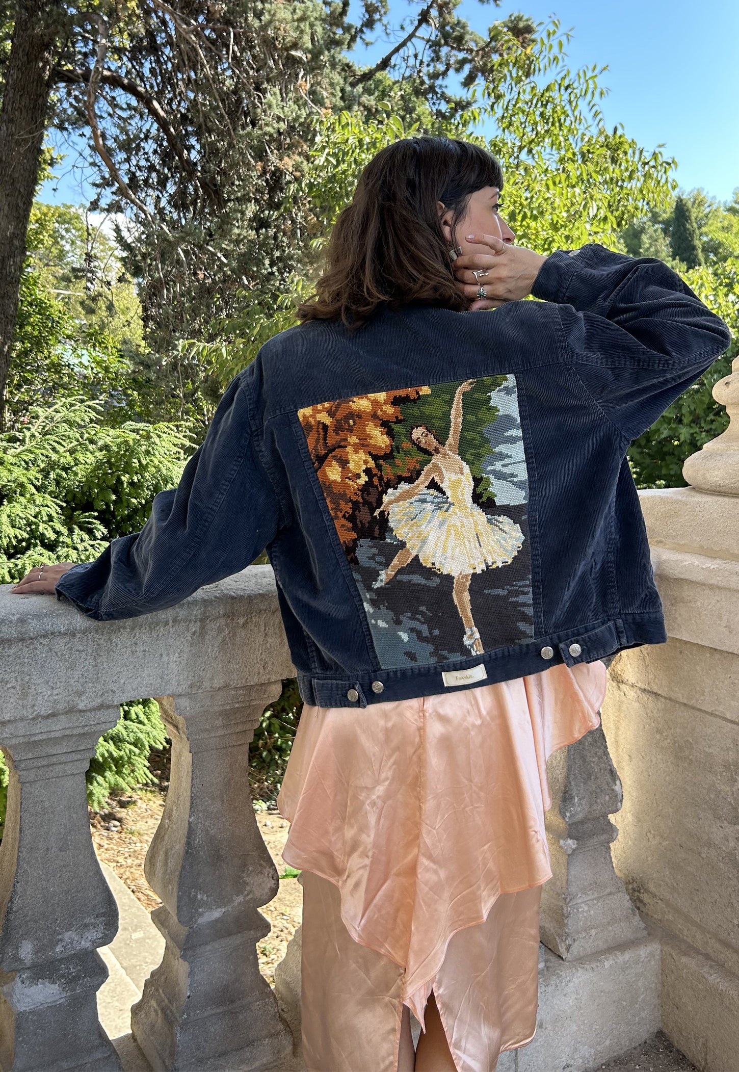 To be treasured, worn to a festival or everyday... Frankie. reworks vintage denim jacket with French tapestries into wearable soft cotton denim jackets. With a feature patch on the back and a cute single patch on the pocket.