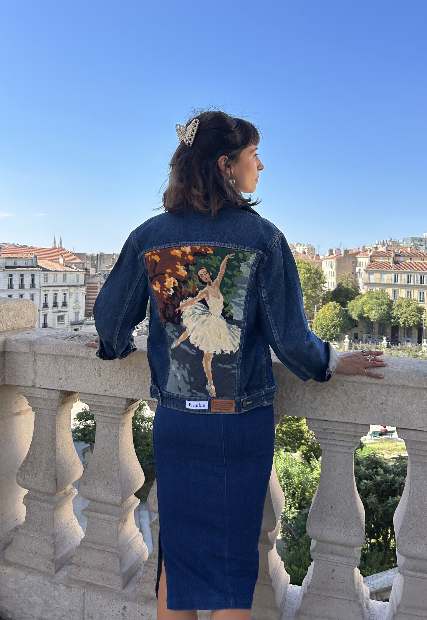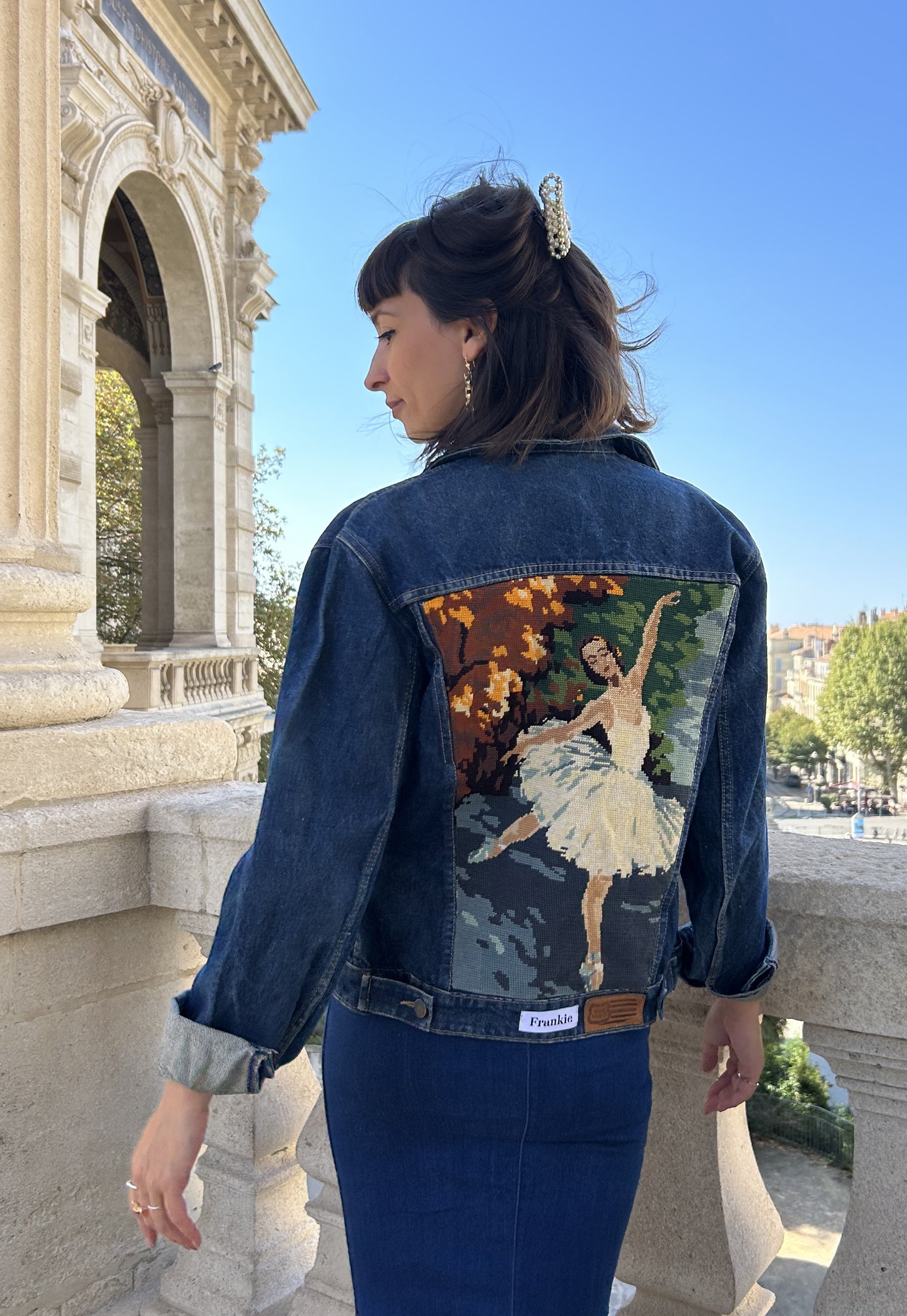 To be treasured, worn to a festival or everyday... Frankie. reworks vintage denim jacket with French tapestries into wearable soft cotton denim jackets. With a feature patch on the back and a cute single patch on the pocket.