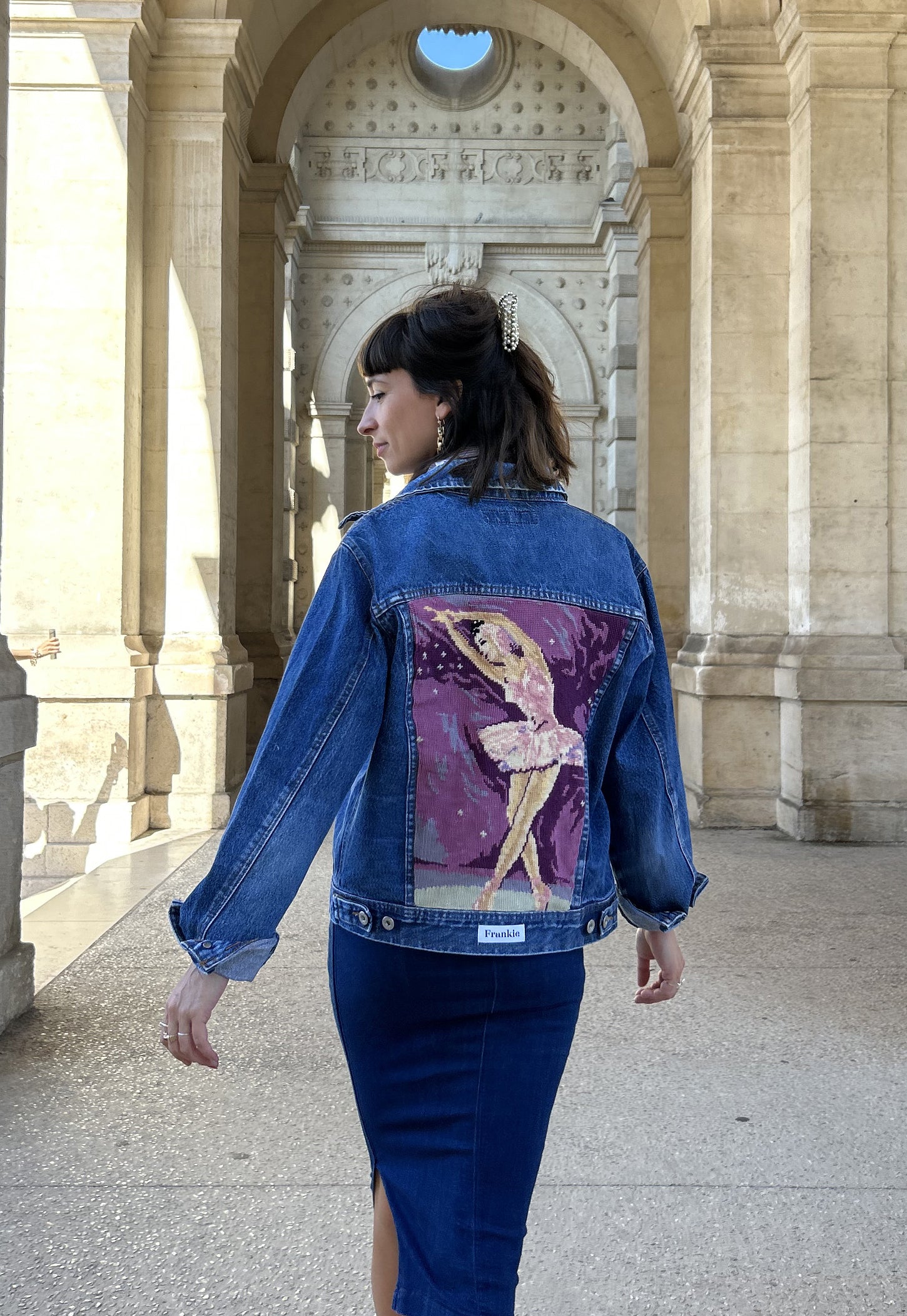 To be treasured, worn to a festival or everyday... Frankie. reworks vintage denim jacket with French tapestries into wearable soft cotton denim jackets. With a feature patch on the back and a cute single patch on the pocket.