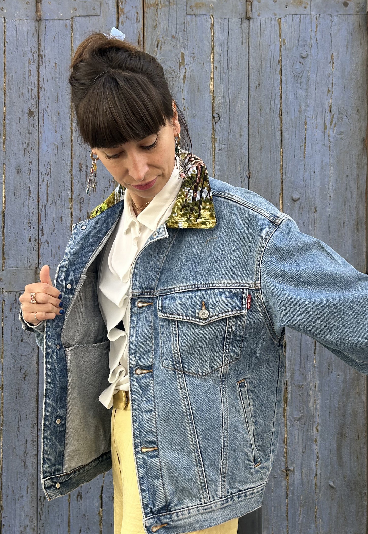 All denim is purchased vintage in U.K, France or Italy and tapestries are sourced in France in Antique markets.